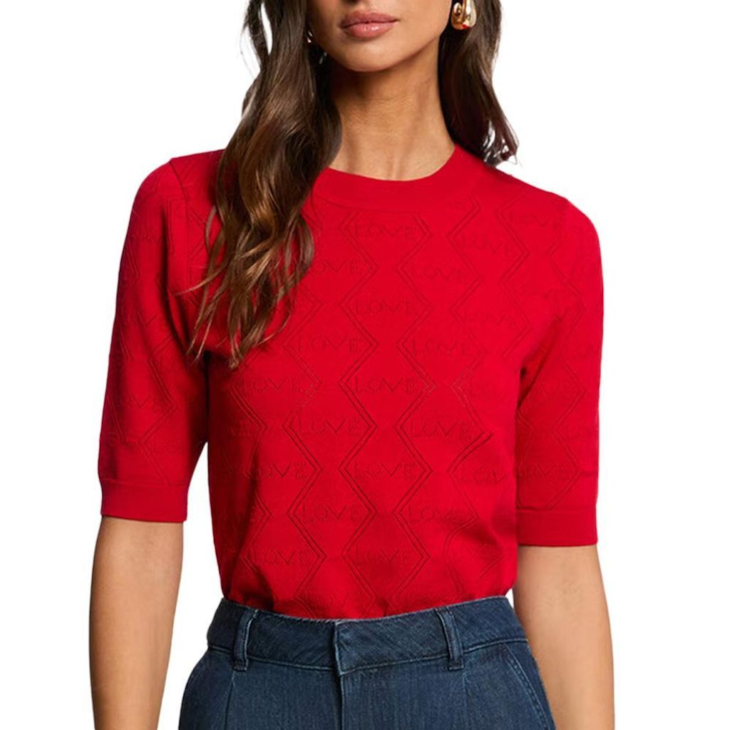 Pull droit col rond à détails ajourés by MORGAN pour Femme.Coloris : Rouge Col rondCoupe droiteManches courtes longueur coudeFermeture : à enfilerDétails fantaisies ajourésFinitions bords-côtes54% Viscose 46% Polyester