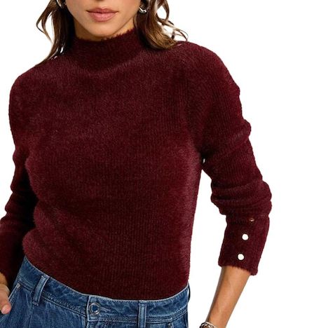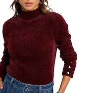 Pull femme de la marque MorganManches longuesCol rond montantColoris : Bordeaux Maille fine et douceBoutons sur les poignetsComposition : 100% polyamide