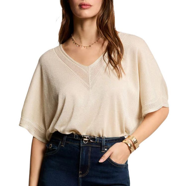 Craquez pour le pull de la marque MORGAN !Coloris : Écru Col VManches courtesComposition : Fil Metallise 7% Polyester 13% Viscose 80%