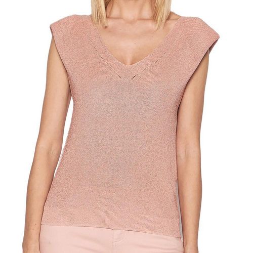 Pull pour femme de la marque Morgan Manches courtes Epaulettes Col V Maille Coloris : Rose brillant Composition : 67% viscose , 16% polyester , 9% polyamide , 8% fibre métallique