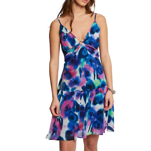 Craquez pour cette jolie robe colorée de la marque MorganCol V Fines bretellesMotifs imprimésColoris : Rose, Bleu, Vert, NoirComposition : 50% polyester, 50% polyester recyclé
