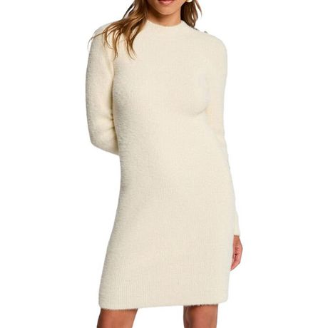 Optez pour cette robe Morgan Coloris : Ecru Composition : 100% polyamideCol rondManches longuesFine mailleMaille duveteuseBoutons décoratifs sur l'épaule