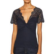 Craquez pour le T-shirt de la marque MORGAN !Coloris : MarineCoupe slimCol en VManches courtesComposition : 61% Polyester, 37% Viscose, 2% Elasthanne