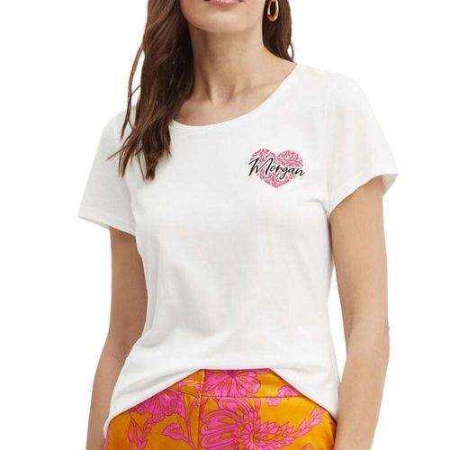 Craquez pour le T-shirt de la marque MORGAN !Coloris : BlancCoupe droiteCol rondManches courtesComposition : 50% Coton, 50% Textile