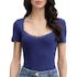 Opte pour le t-shirt femme Morgan !- Col V dentelle- Manches courtes- Coloris : Marine- Tissu côtelé- Composition : 54% COTON 43% VISCOSE 3% ELASTHANNE