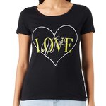 T-shirt femme de la marque Morgan Manches courtes Col rond Coloris : Noir Inscription sur l'avant avec coeur Composition : 50% coton , 50% modal