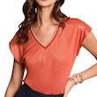 Craquez pour le T-shirt de la marque MORGAN !Coloris : Orange Coupe droiteCol en VManches courtesComposition : 66% Viscose, 34% Polyester