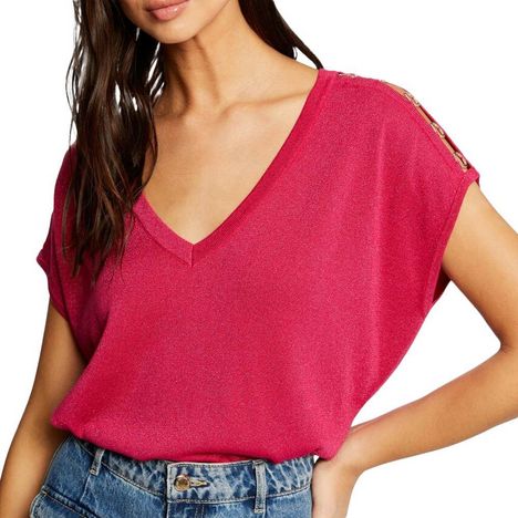 Optez pour ce t-shirt de la marque MORGANColoris : RoseComposition : 85% viscose, 10% polyester, 5% fils métalisésCol VManches courtes