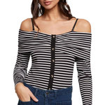 Optez pour ce t-shirt manches longues MorganElasthanne 5% Polyester 65% Viscose 30%Coloris : Noire/Blanche Col rondFines bretelles