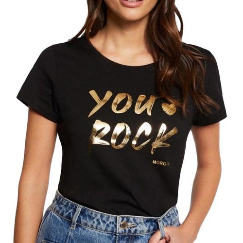 Craquez pour ce t-shirt de la marque MORGANColoris : Noir, DoréManches courtesComposition : 50% coton, 50% modalImprimé sur l'avant