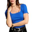 Optez pour ce t-shirt Morgan- Composition : 94% Coton, 6% Elasthanne- Coloris : Bleu Royal- Col carré- Manches courtes