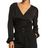 Top pour femme de la marque Morgan Manches longues Col V Coloris : Noir brillant Tissu fluide et souple Coupe courte Fronce et élastique à la taille Composition : 84% polyamide , 10% élasthanne , 6% fil métallique