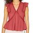 Optez pour le top femme de la marque Morgan Manches courtes à volants Col V Lien dans le dos Bandes dentelle Coloris : Rose foncé Composition : 53% viscose , 47% polyamide