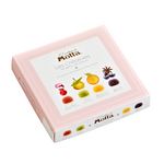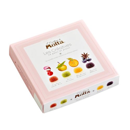 Inspirées de la grande tradition pâtissière, ces pâtes de fruits nous plongent dans un univers de gourmandise et d’audace : Poire/Verveine, Madarine/Cardamone, Framboise/Litchi et Myrtille/Badiane