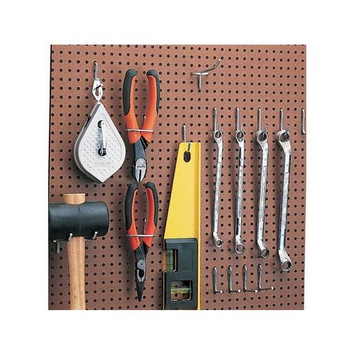 PANNEAU PERFORE+40 CROCHETSLe kit est composé de :1 panneau perforé en isorel 60 x 90 cm1 lot de 40 crochets universels1 jeu de distanceurs - à fixer entre le mur et le panneau perforé1 barrette porte outils