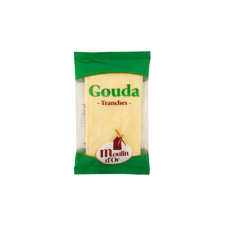 Tranches Gouda Moulin d'Or 200g, lait pasteurisé de vache, Origine UE, 29% de MG Tranches de Gouda - idéal pour la préparation des sandwichs, croques, paninis...