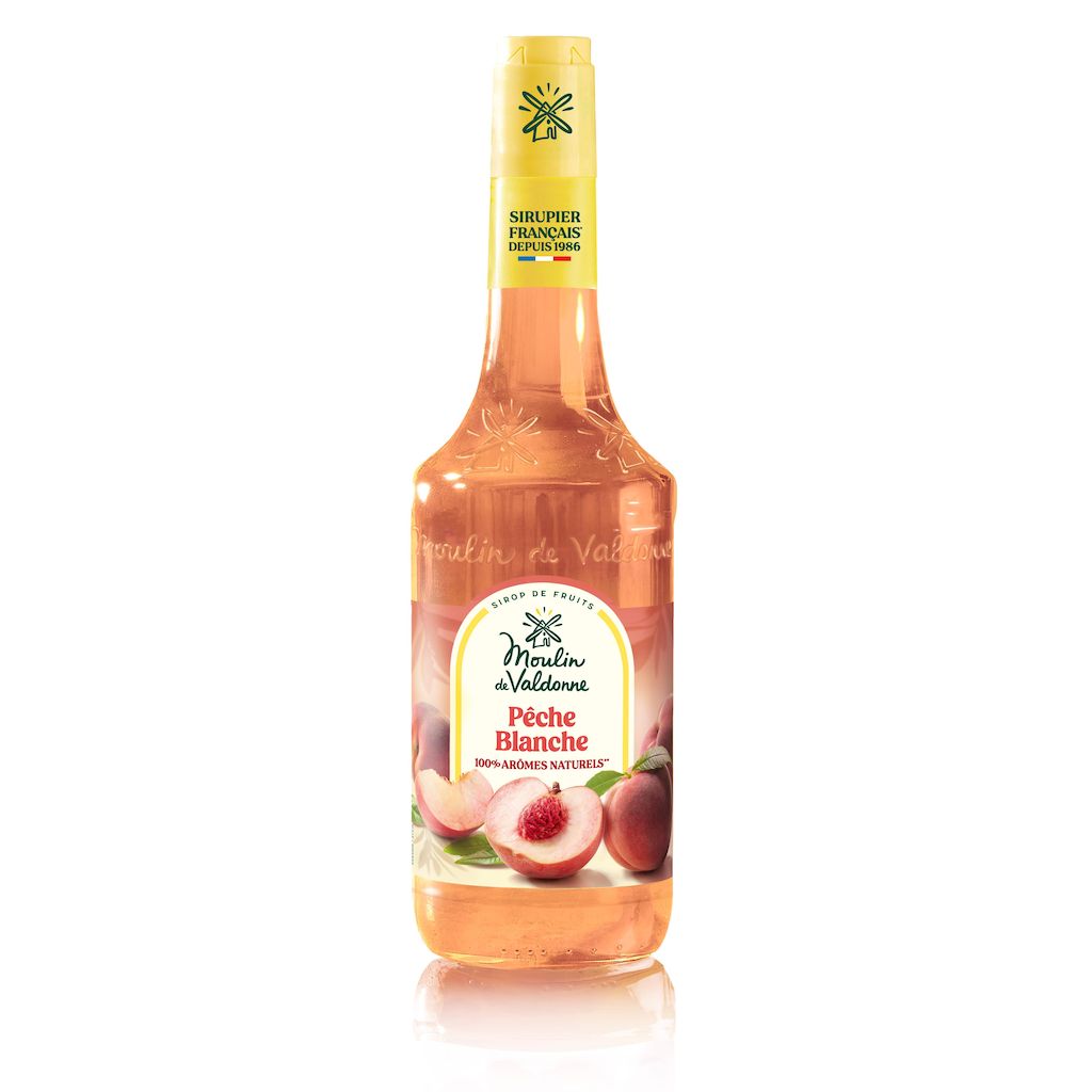 Sucre, eau, jus de pêche blanche à base de concentré 17%, acidifiant : acide citrique, arômes naturels, colorant : caroténoïdes.