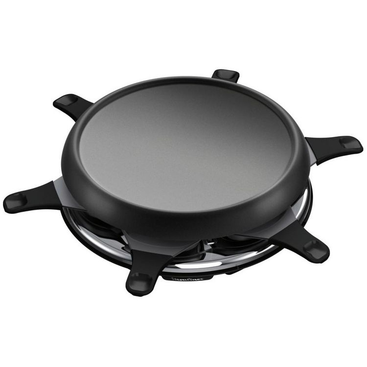 Moulinex RE151812 Appareil à raclette Accessimo Moulinex RE151812 avec 3 fonctions : raclette, plancha et crêpe selon vos envies. Variez les plaisirs et les envies avec la raclette Accessimo. Accompagnez facilement votre raclette de légumes ou de viandes grillés. Raclette pour 6 personnes au design moderne pour savourer de délicieux repas en famille ou entre amis. Son revêtement antiadhésif vous permet un nettoyage facile.3 fonctionsDisposez facilement de votre appareil à raclette 3 en 1 : déposez votre fromage à fondre dans les coupelles au revêtement anti-adhésif, grâce à la plaque plancha et crêpe, grillez facilement des lamelles de bacon, des morceaux de légumes ou maintenez vos pommes de terre au chaud. Et pour finir pour le desser de délicieuse crêpe pour les plus gourmands.Facile à nettoyerRevêtement antiadhésif des plaques et des coupelles qui vous garantit un nettoyage facile.Fabriqué en Haute-SavoieFabriqué selon la tradition et l'excellence française dans la région qui a vu naître la raclette.Produit réparable - 10 ansConçu pour être réparé.Mise à disposition rapide des pièces à coût limité pendant 10 ans et plus.6500 centres de réparations dans le Monde.