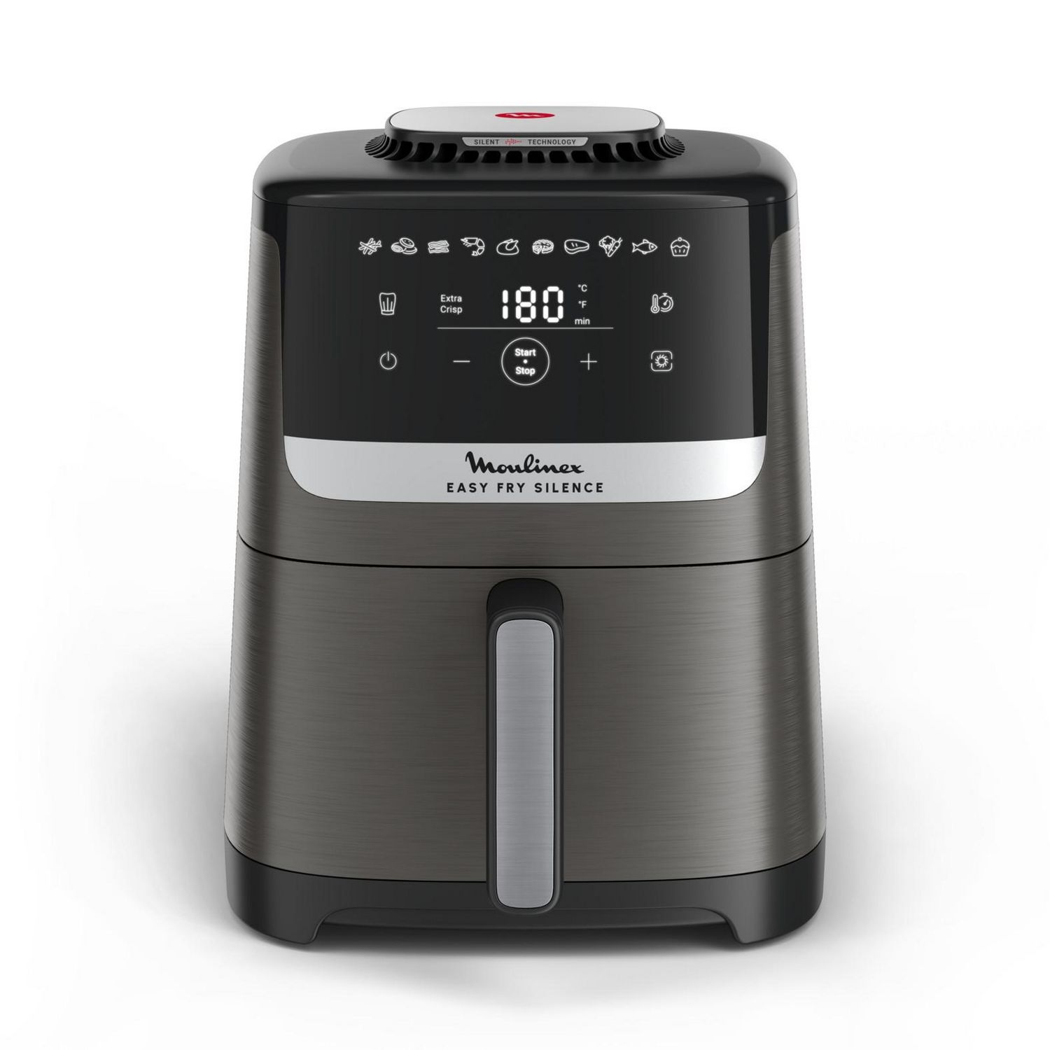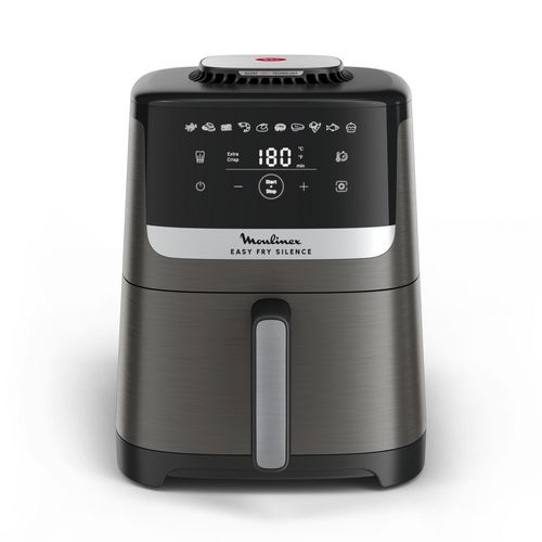 Moulinex EZ551HF0 Le Moulinex EZ551HF0 Easy Fry Silence en gris charbon, permet de savourer des plats croustillants en toute tranquillité. Grâce à sa technologie Silence exclusive, il assure une cuisson puissante tout en réduisant le bruit pour une expérience sereine en cuisine. Avec ses 10 programmes de cuisson prédéfinis, il permet de préparer une grande variété de plats, comme des frites, du poulet rôti, des légumes, du poisson ou encore des gâteaux. Son écran tactile intuitif et sa température réglable de 40 à 220 °C garantissent un contrôle précis des recettes. La technologie Extra Crisp assure une cuisson rapide et homogène, offrant des résultats encore plus croustillants avec peu ou pas d'huile. Plus rapide et économique qu'un four traditionnel, il réduit le temps de cuisson de 55 % et permet d'économiser jusqu'à 70 % d'énergie. Son panier antiadhésif de 5 L, facile à nettoyer et compatible lave-vaisselle, est parfait pour régaler toute la famille. Pour encore plus d'inspiration, l'application My Moulinex propose des recettes adaptées à cet Air Fryer. Conçu pour durer, l'appareil est réparable pendant 15 ans grâce à un réseau de réparateurs agréés.