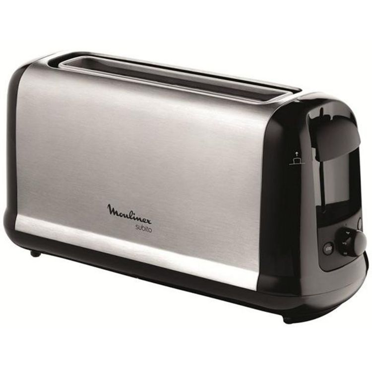 Moulinex LS260800 Le grille-pain LS260800 Subito de Moulinex vous permettra de griller vos tranches très facilement.Simple d'utilisation, vous pourrez grâce à sa grande fente accueillir tous types de pains. - Puissance : 800 W1 grande fente pour tous types de pain( baguette, toast)Tiroir ramasse mie