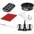 Composition | set poche à douilles, moule à manqué (Ø 24 cm), moule pour 12 mini muffins, spatule avec lame inox et tapis en silicone, 1 livre de recettes et 1 fouet double rotation | |
