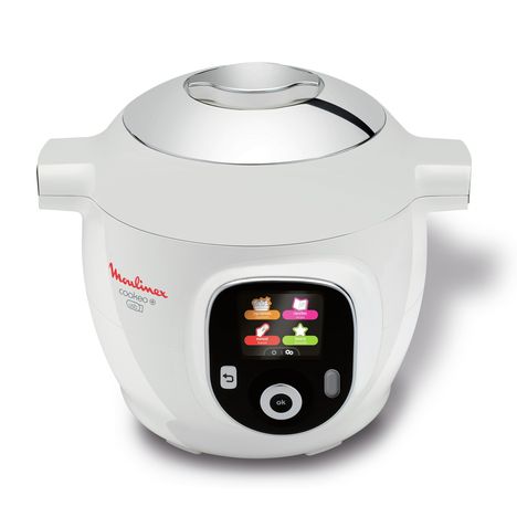 Cookéo est le 1er multicuiseur intelligent de Moulinex, pour cuisiner vite et bien vos plats du quotidien, en vous laissant guider. Grâce à son écran digital et son guide culinaire interactif, Cookéo réfléchit pour vous, adapte les recettes et vous guide pas à pas. Grâce à la cuisson sous pression, Cookéo vous propose 40 recettes en moins de 11 minutes.