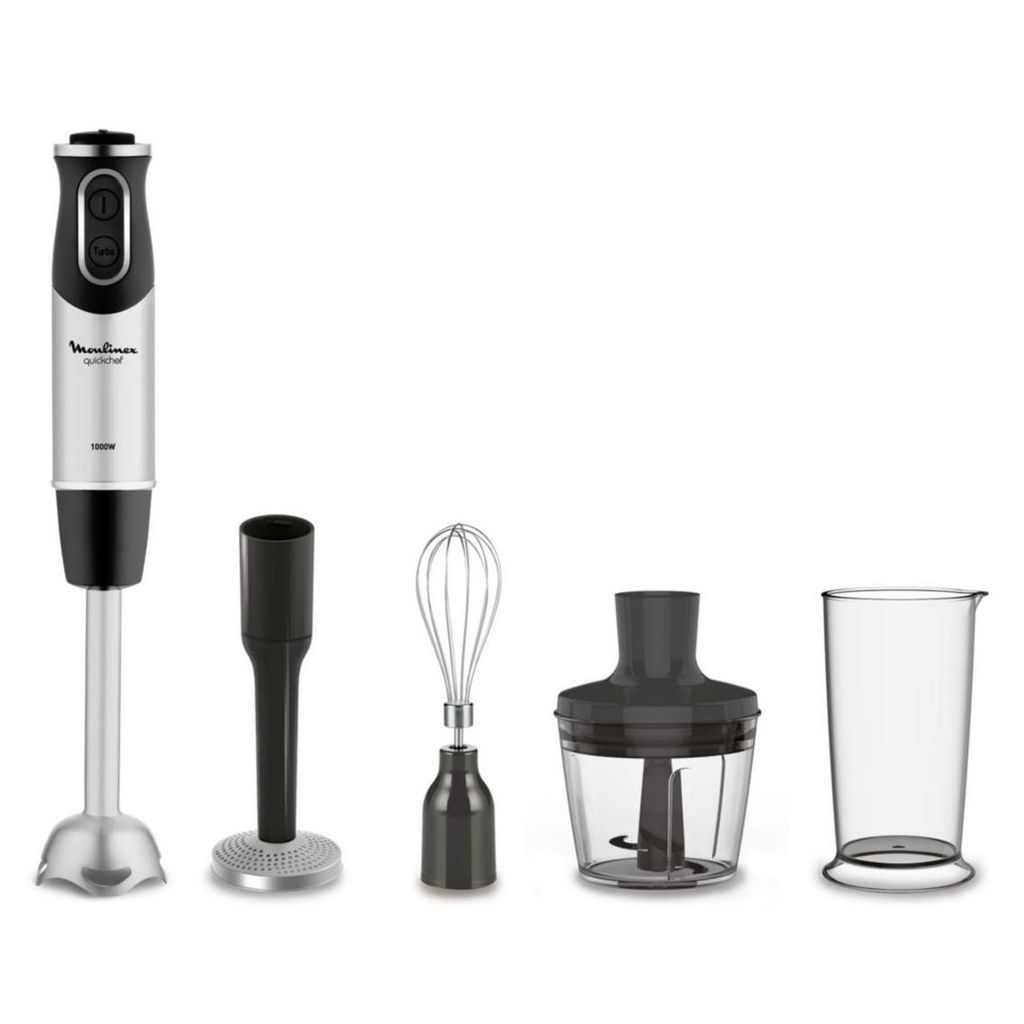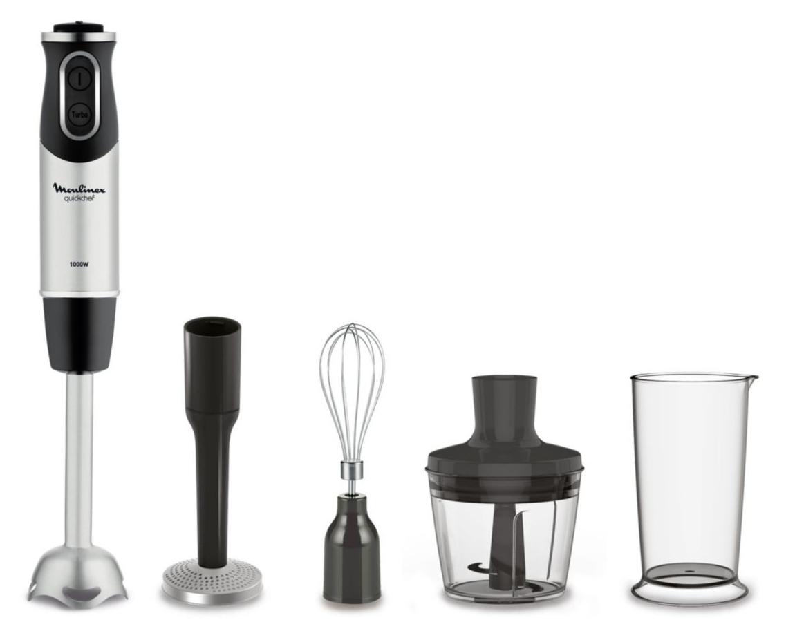 Moulinex DD65H810 Mixeur plongeant 4en1 QUICKCHEF Moulinex DD65H810 comprenant un pied mixeur, mini-hachoir, fouet et un verre doseur.Cuisinez sans effort !Grâce au pied mixeur Quickchef 4 en 1 de Moulinex, profitez d'un maximum de puissance pour un minimum d'effort ! Son moteur de 1000W vous permet