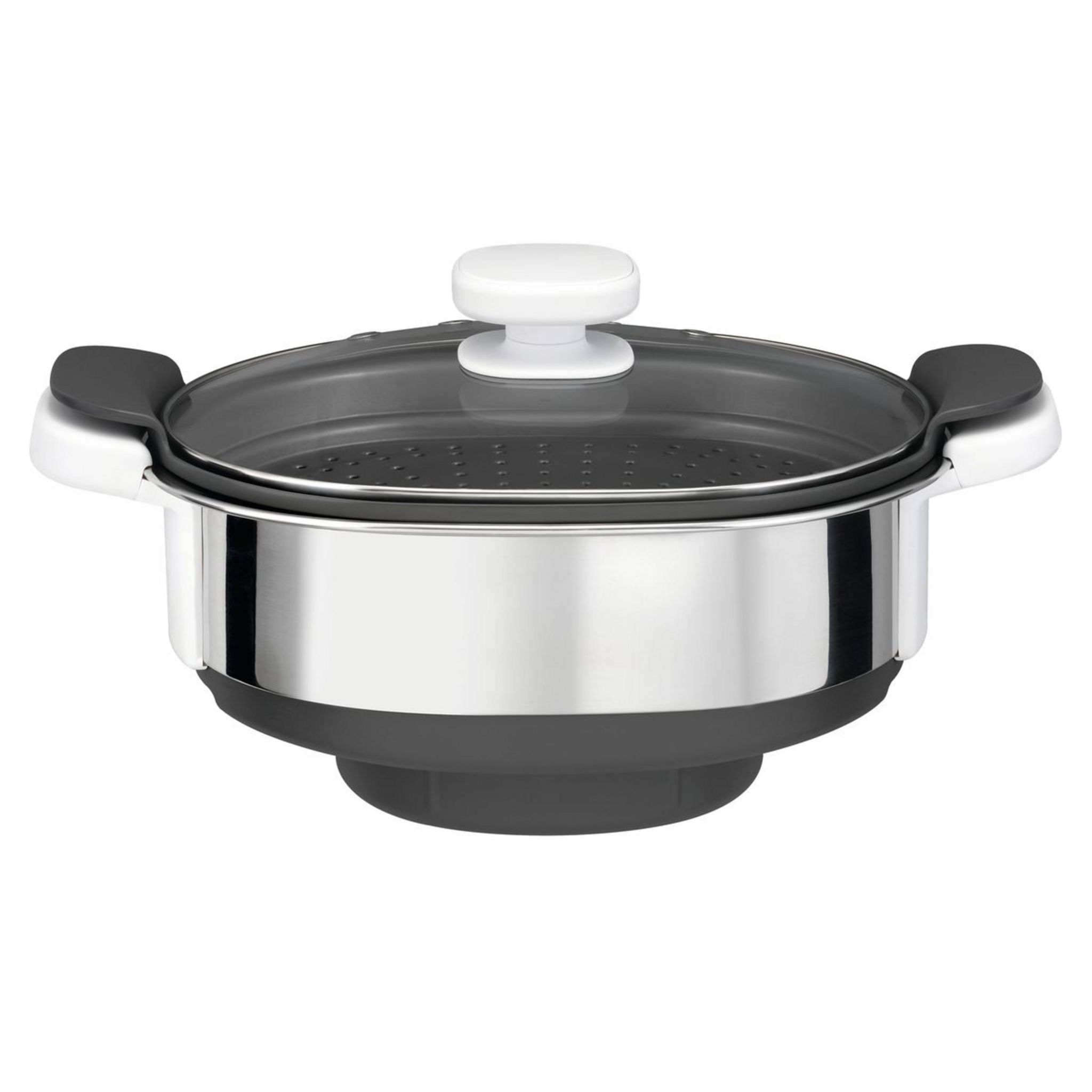 Bol inox 3.7 L, Couvercle verre, Poignées isolantes, Bac récupérateur de jus