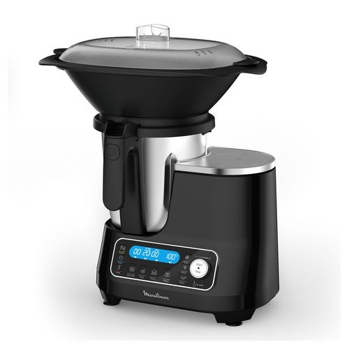 Le robot cuiseur de MOULINEXLe robot cuiseur HF456810 de Moulinex deviendra un véritable allié dans votre cuisine pour vous aider à préparer vos repas rapidement et simplement. Le robot est doté d'une puissance de 1400 W et sa capacité de 3,6 L vous permettra de cuisiner pour 4 convives. Avec ses 32 fonctions, dont 5 programmes automatiques et des réglages manuels, vous pouvez réaliser des recettes du quotidien en seulement deux clics.Pour cuisiner une variété d'aliment, Clickchef dispose de 5 programmes automatiques : soupe, pâtisserie, cuisson vapeur, sauce et mijoté. Et également d'un mode manuel pour prendre le contrôle et personnaliser vos recettes. Le robot cuiseur est équipé de 5 accessoires : lame universelle, panier vapeur externe, cuiseur vapeur, batteur et mélangeur. Ils vous seront utiles pour varier les types de préparation et faire selon vos envies.La balance intégrée permet des quantités précises à chaque utilisation. Il est livré avec un livre de cuisine de recettes.