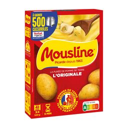 Quand je fais de la purée mousline, je suis sûre que tout le monde en reprend, moi je fais un petit volcan, pour mettre du jus dedans....Quelle madeleine de Proust !! Biensur ce n'est pas de la purée maison MAIS il suffit d'ajouter un peu de noix de muscade et du beurre et on s'y tromperai presque. Je m'en sert en simple accompagnement ou pour faire des Hachis parmentier ou Brandade. Très bon et pas cher, une bonne alternative.