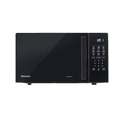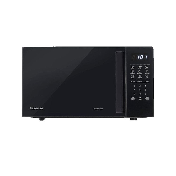 Le micro-ondes Hisense H20MOBS4HI est un appareil élégant de couleur noire offrant une capacité de 20 litres. Grâce à une puissance de 800 W et un grill de 1000 W, il propose 8 programmes automatiques qui facilitent la cuisson de divers plats comme la pizza, la viande et les légumes. Sa technologie