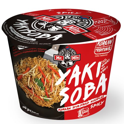 Les “Yakisoba” sont des nouilles coréennes sautées rapides et pratiques. Les cups Mr. Min permettent d’obtenir de délicieuses nouilles sautées et offrent un moment de plaisir et sa saveur spicy, un goût authentique de Corée chez vous ou à importer, prêt en 4 minutes.