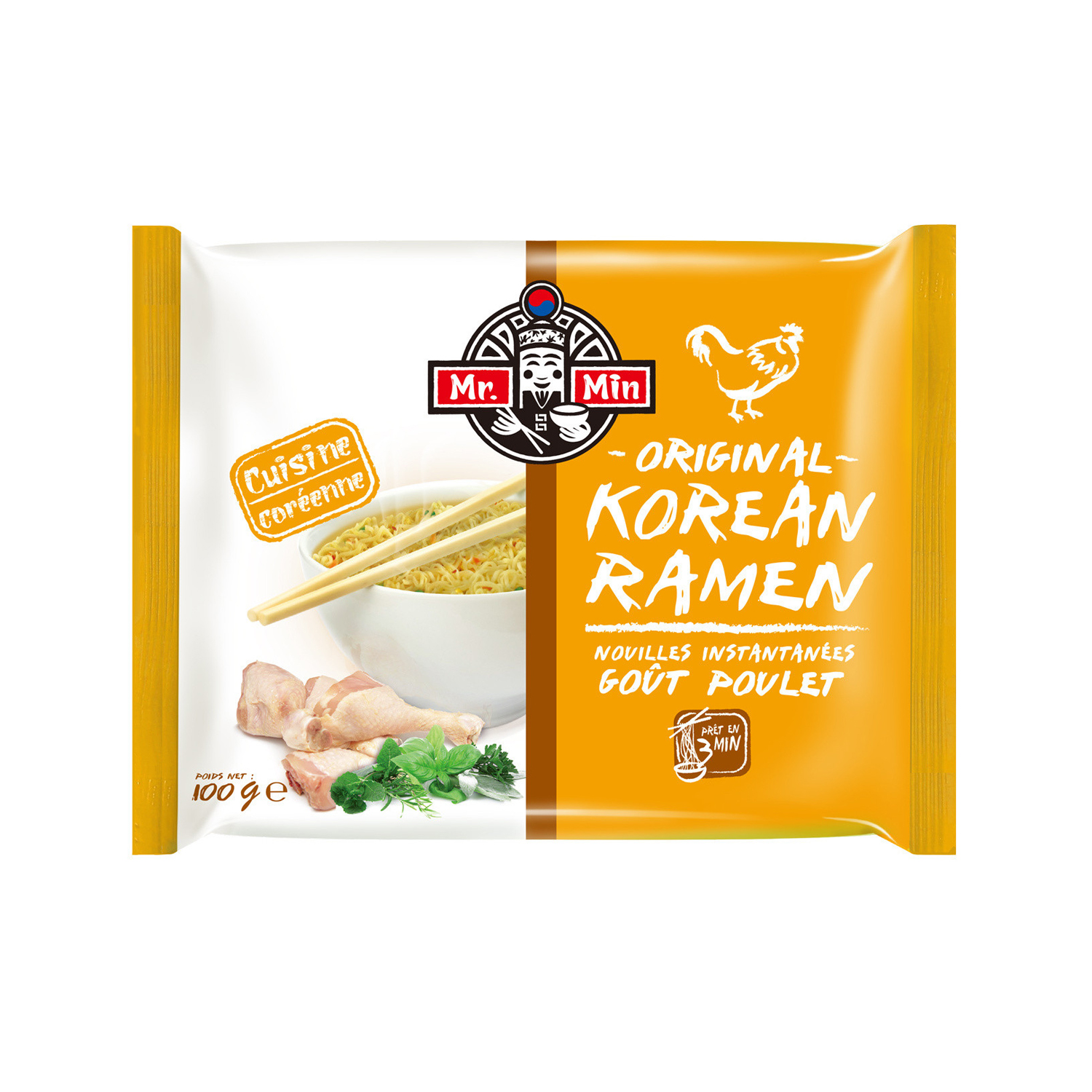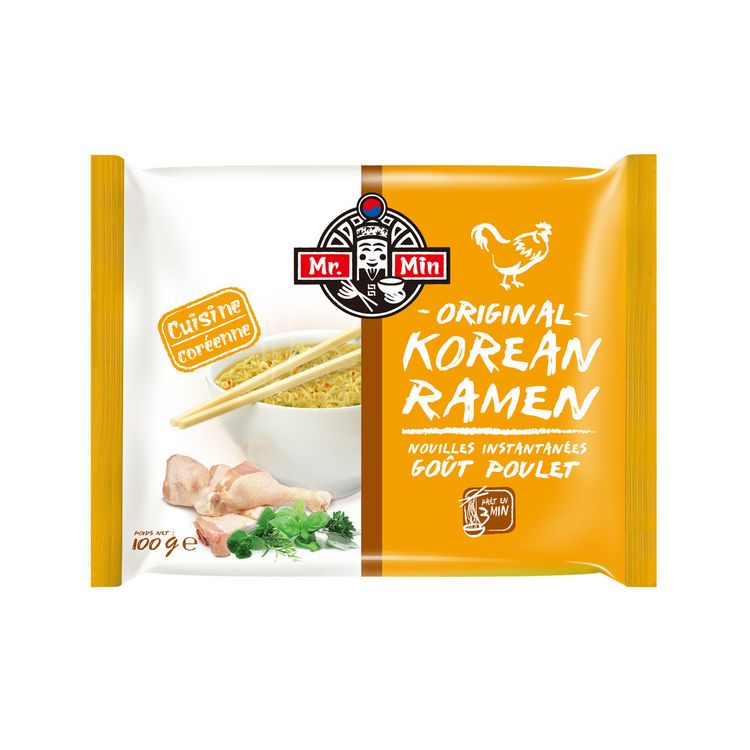 Dégustez les ramens instantanés Mr. Min saveur poulet pour une authenticité et un plaisir “made in Korea” à la maison, prêt en 4 min.
