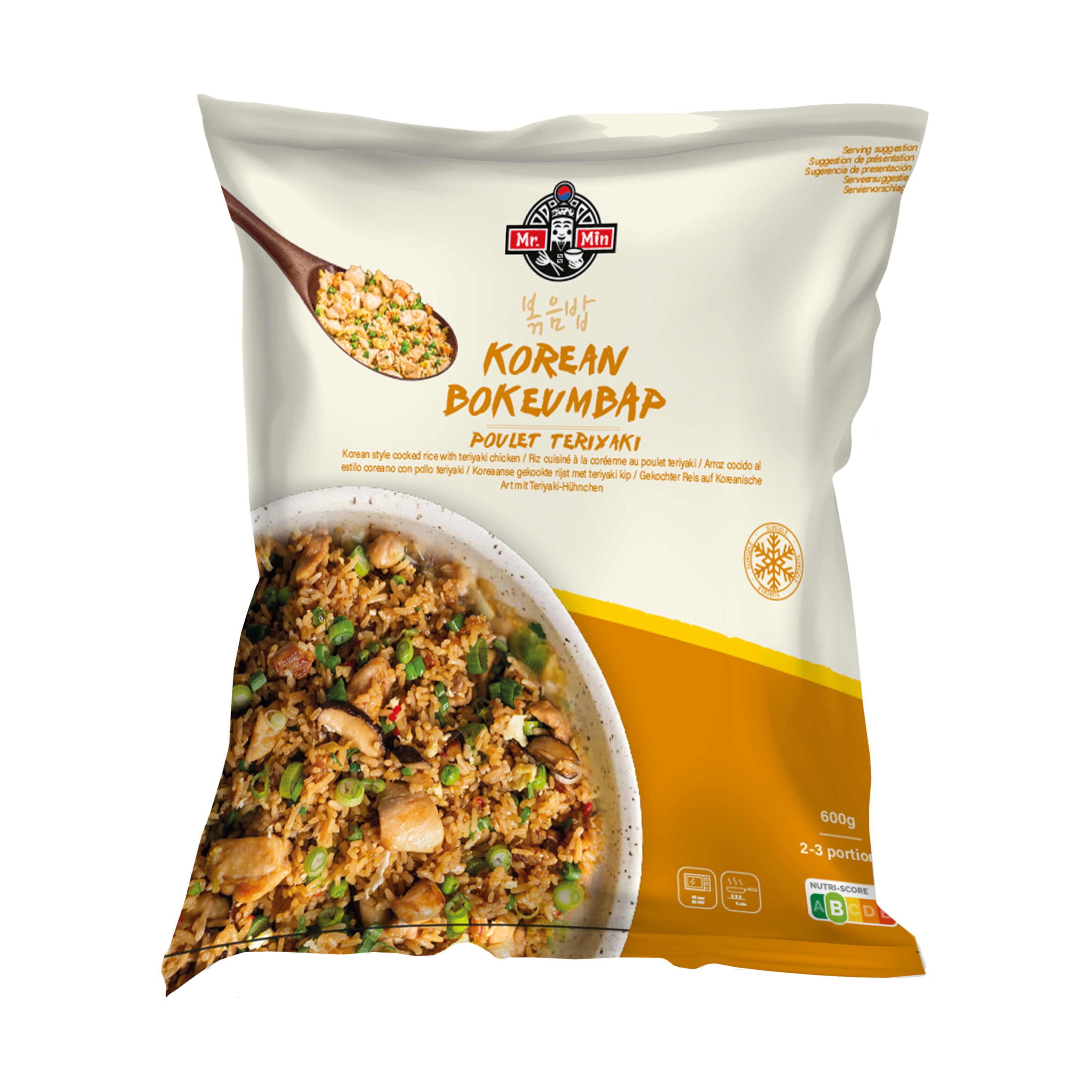 Ingrédients : Riz cuit 59% [eau, riz 28%], légumes 17% [poivron rouge, oignon, champignon noir, shiitake, oignon de printemps], sauce teriyaki 13% [gingembre, sauce SOJA (contient BLE), ail, vergeoise, mirin, SESAME grillé, huile de SESAME, vinaigre de riz, amidon de maïs], poulet (France) 8%, huile de tournesol.