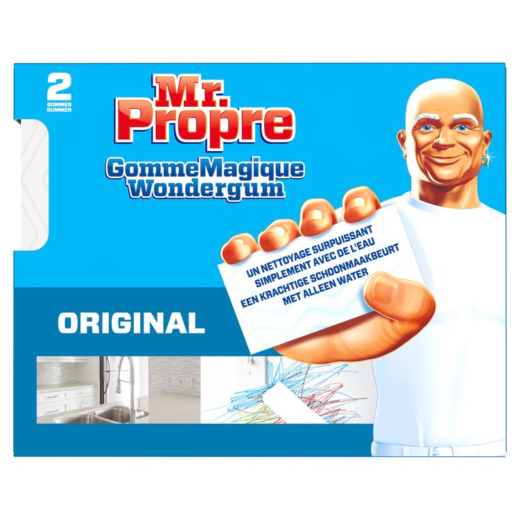 Essayez Mr. Propre GommeMagique pour combattre les taches difficiles que vous avez abandonnées, partout dans la maison. Il élimine les taches, les marques et les éraflures de la plupart des surfaces lavables. Idéal pour les taches de nettoyage difficiles et les saletés ! Essayez-le où que vous trouviez de la saleté, partout dans la maison : du crayon sur les murs à la graisse brûlée sur les plaques de cuisson, des baignoires sales aux joints entre les carreaux ! Ajoutez simplement de l'eau, appuyez et nettoyez les taches difficiles comme par magie.