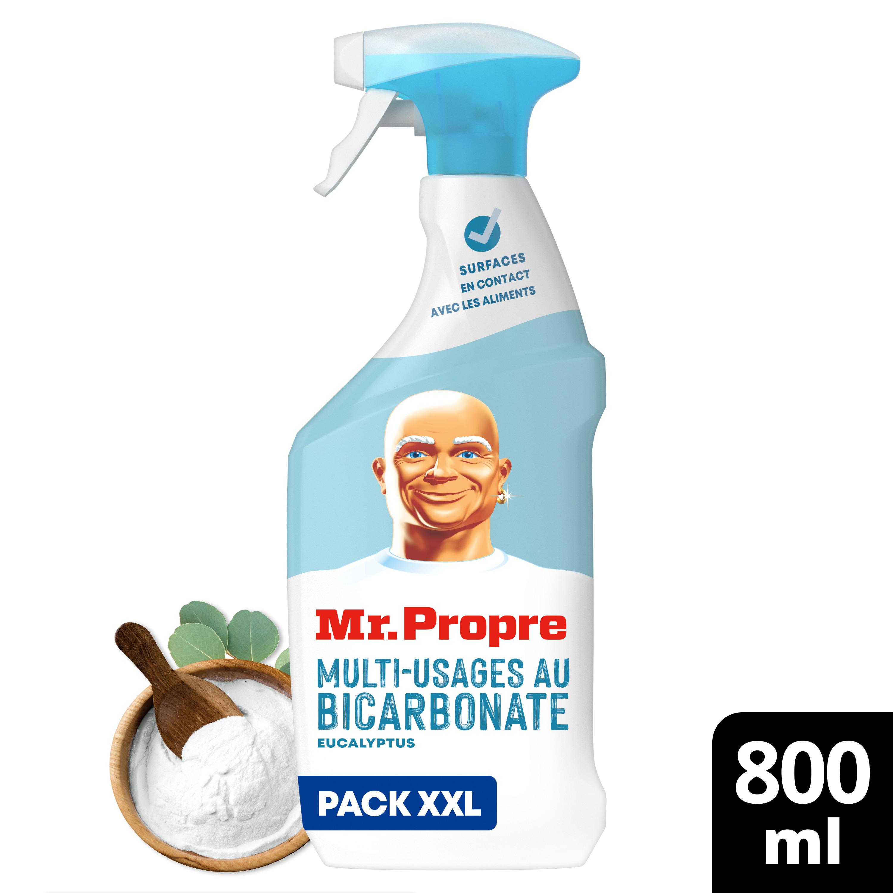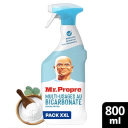 Le spray multi-usages Mr. Propre est idéal pour nettoyer presque toutes les surfaces dures de votre intérieur. Il combine la puissance de nettoyage traditionnelle de Mr. Propre à contient du bicarbonate. Utilisez-le pour nettoyer l'évier de votre cuisine, une plaque de cuisson couverte de graisse, votre porte de douche et même le sol pour dégraisser et éliminer les odeurs. Il convient aux surfaces en contact avec les aliments et est disponible dans le parfum Bicarbonate & Eucalyptus. Il est nécessaire de rincer toutes les surfaces en contact direct avec de la nourriture.