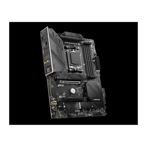 Supportant jusqu'à 128 Go de DDR5-6400+ (OC) via 4 slots DIMM, cette plateforme permet un overclocking mémoire simplifié avec AMD EXPO. Trois emplacements M.2 PCIe 4.0 et six ports SATA offrent un espace de stockage modulable pour jeux et données.