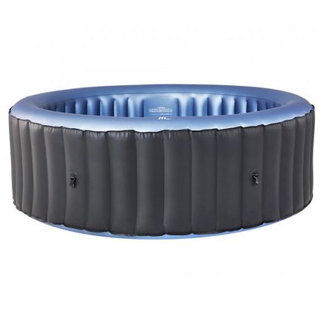 D'une dimension de 180x70 cm, ce spa rond gonflable dispose d'une structure en PVC de couleur gris anthracite et d'un intérieur de coloris bleu métallique.