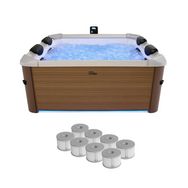 Spa rigide 6 places hydromassages. 4 coussins + 8 filtres. OSLO AMBER. beige. L 160 x P 160 x H 65 cm