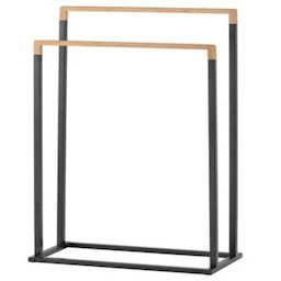 Msv 40.07652 Indispensable pour votre salle de bain pour y faire sécher vos serviettes, gants de toilette, serviettes à mains ou même en tant que valet de chambre. pour y déposer vos vêtements ou votre peignoir. L'agencement des barreaux et leur espacement favorise la circulation de l'air et permet un séchage rapide. Design moderne qui se fond facilement dans tous les styles d'intérieur. Matière : acier et bambou