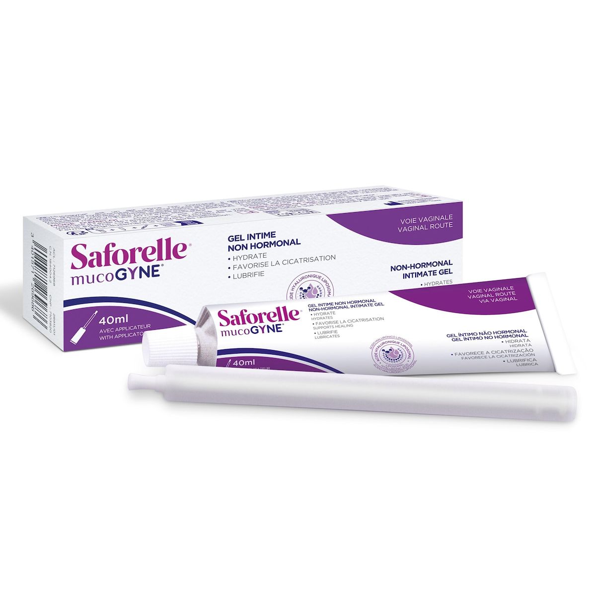SAFORELLE MUCOGYNE est un gel intime non hormonal à base d'acide hyaluronique indiqué pour toutes les femmes adultes pour hydrater, favoriser la cicatrisation et lubrifier la muqueuse vulvo-vaginale. Compatible avec les préservatifs. Dispositif médical