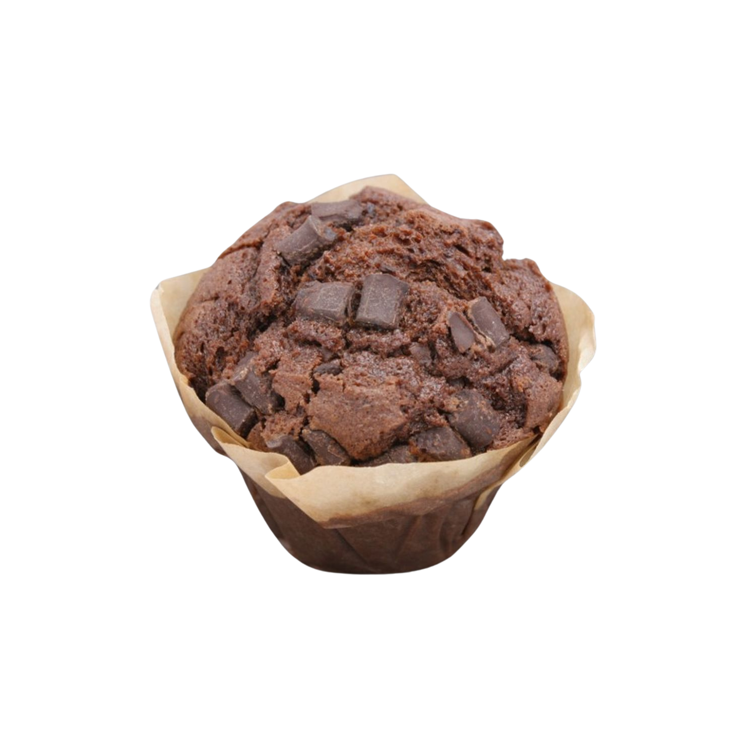 Muffin cacao aux pépites de chocolat noir décongelé.