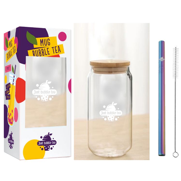 Mug Bubble Tea avec paille inox et brosse de nettoyage