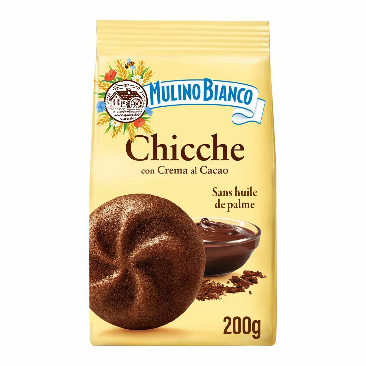 Mulino Bianco, c'est un savoir-faire unique et des ingrédients soigneusement sélectionnés. Découvrez la gourmandise à l'italienne lors d'un moment de douceur irrésistible. Un biscuit généreux fourré à la crème de cacao pour donner vie à un biscuit 100% gourmand. Notre cacao est issu d'une filière durable : il est bon pour vous, et pour la planète. Faites-vous plaisir : la recette est sans huile de palme et sans conservateurs, réalisée avec des œufs de poules élevées en plein air.