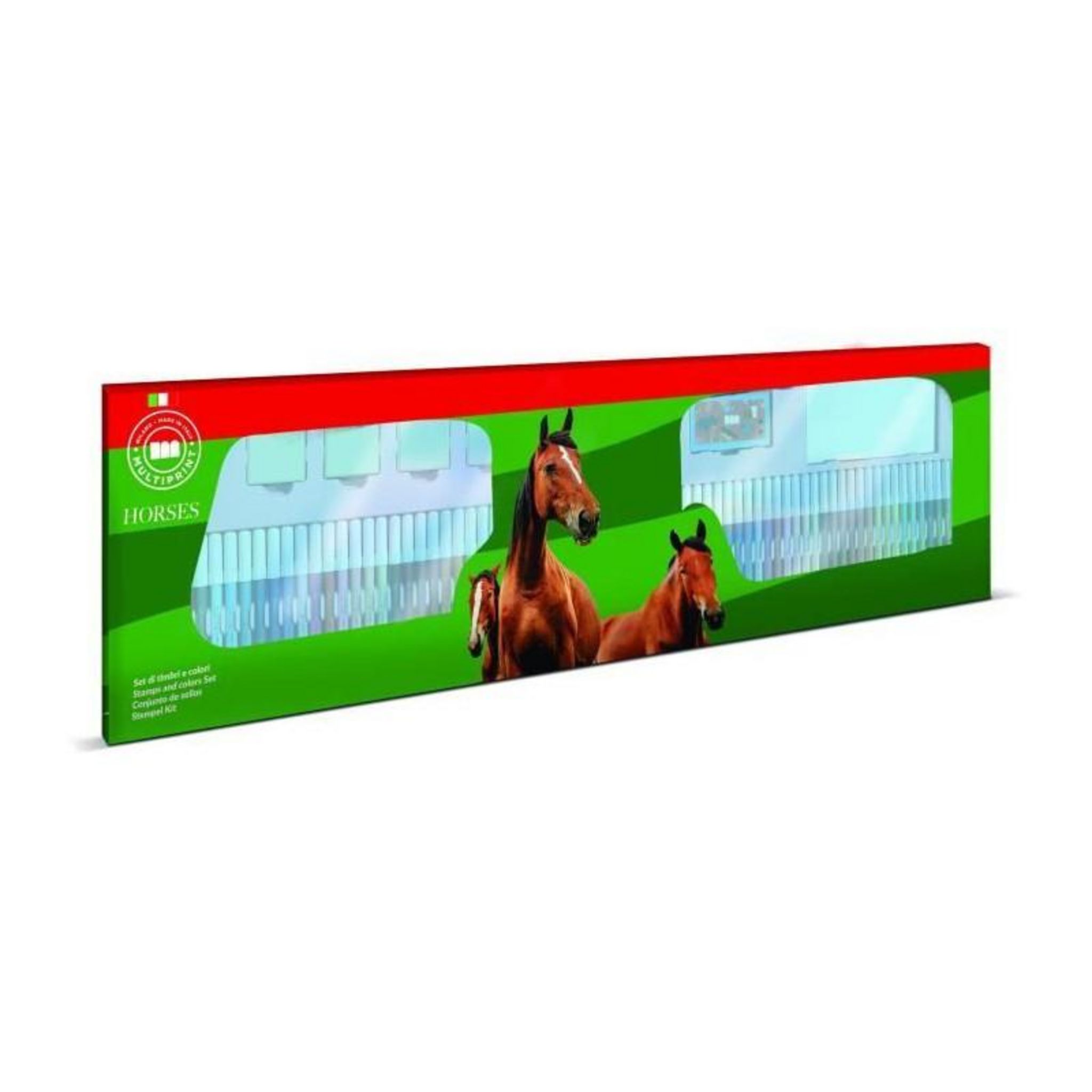 Coffret coloriage - MULTIPRINT - 18895 - 60 feutres 4 tampons Les Chevaux