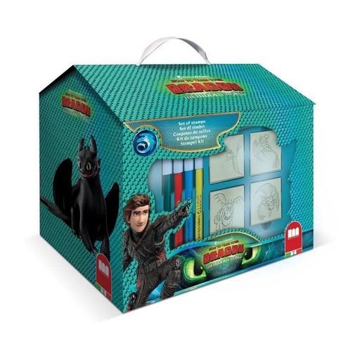 La Maison de coloriage - MULTIPRINT - 9888 - 7 tampons Dragon est un kit créatif idéal pour les enfants qui aiment dessiner et colorier. Ce produit comprend 7 tampons en bois et latex naturel, 1 tampon encreur avec encre lavable et non toxique, ainsi que 7 feutres Giotto également lavables. Cela permet aux jeunes artistes de créer des œuvres uniques et variées tout en s'amusant.