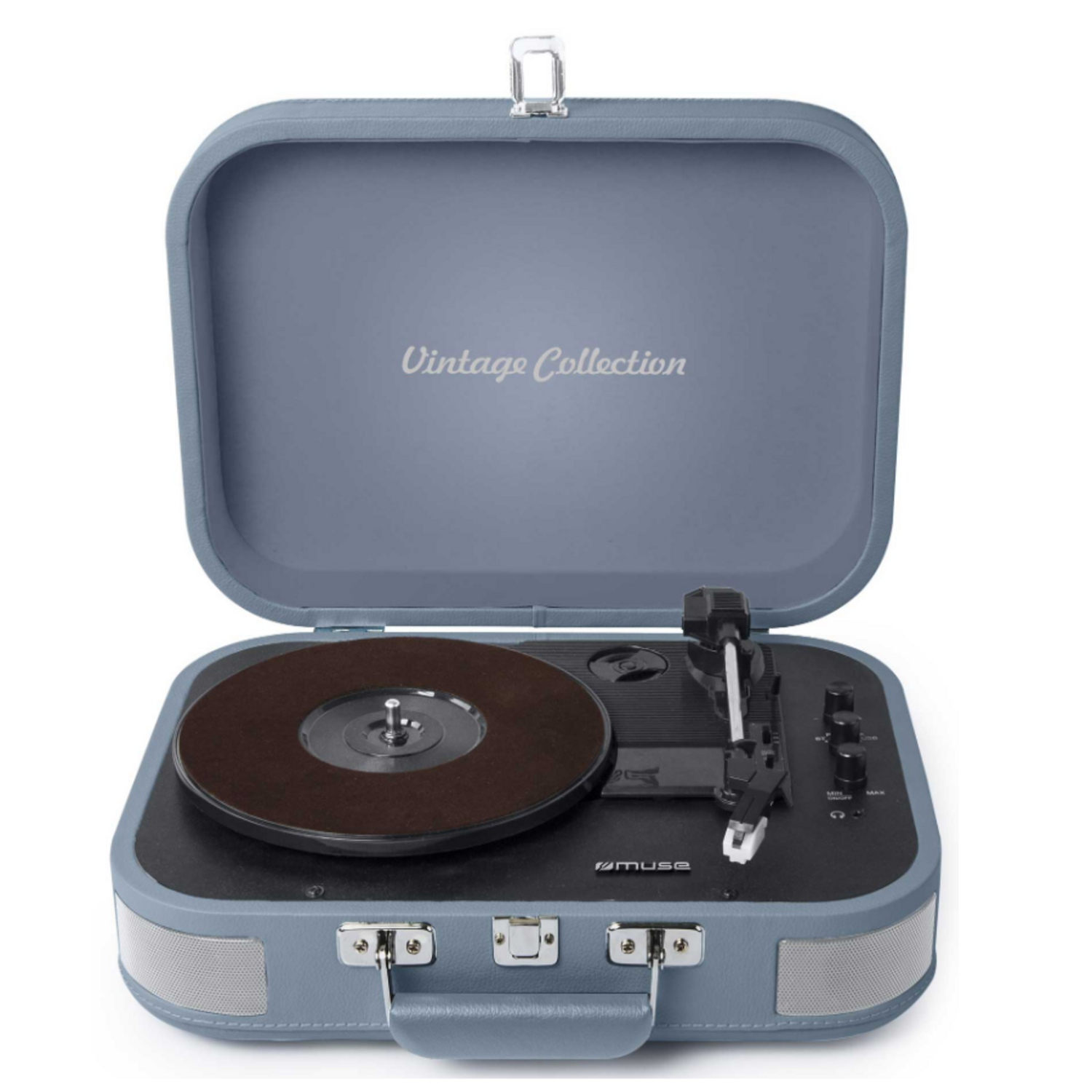 Muse MT201BVB - Type de produit : Platine vinyle.Type : Platine.Vitesse(s) platine disque : 33, 45 et 78 tours.Couleur : Bleu.Puissance de sortie : 2 x 5 W.Autres : 2 enceintes intégrées.Bluetooth : Oui.Autre(s) : Diffusion de la musique en streaming depuis un autre appareil.Sortie USB : Oui.Autre(