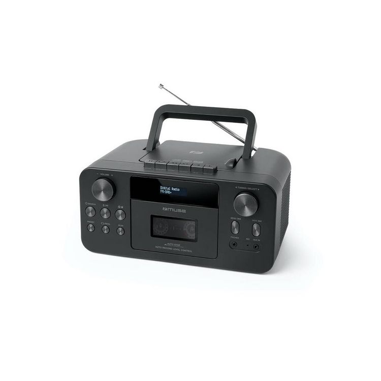 Muse M-182DB Radio-cassette Bluetooth avec lecteur CD Muse M-182DB. Diffusion de la musique en streaming depuis un autre appareil compatible Bluetooth comme un Ordinateur portable, une Tablette ou un Smartphone. - Type de produit : Radio-cassette CD.Lecture numérique FM, DAB/DAB+.Compatible CD/CD-R/