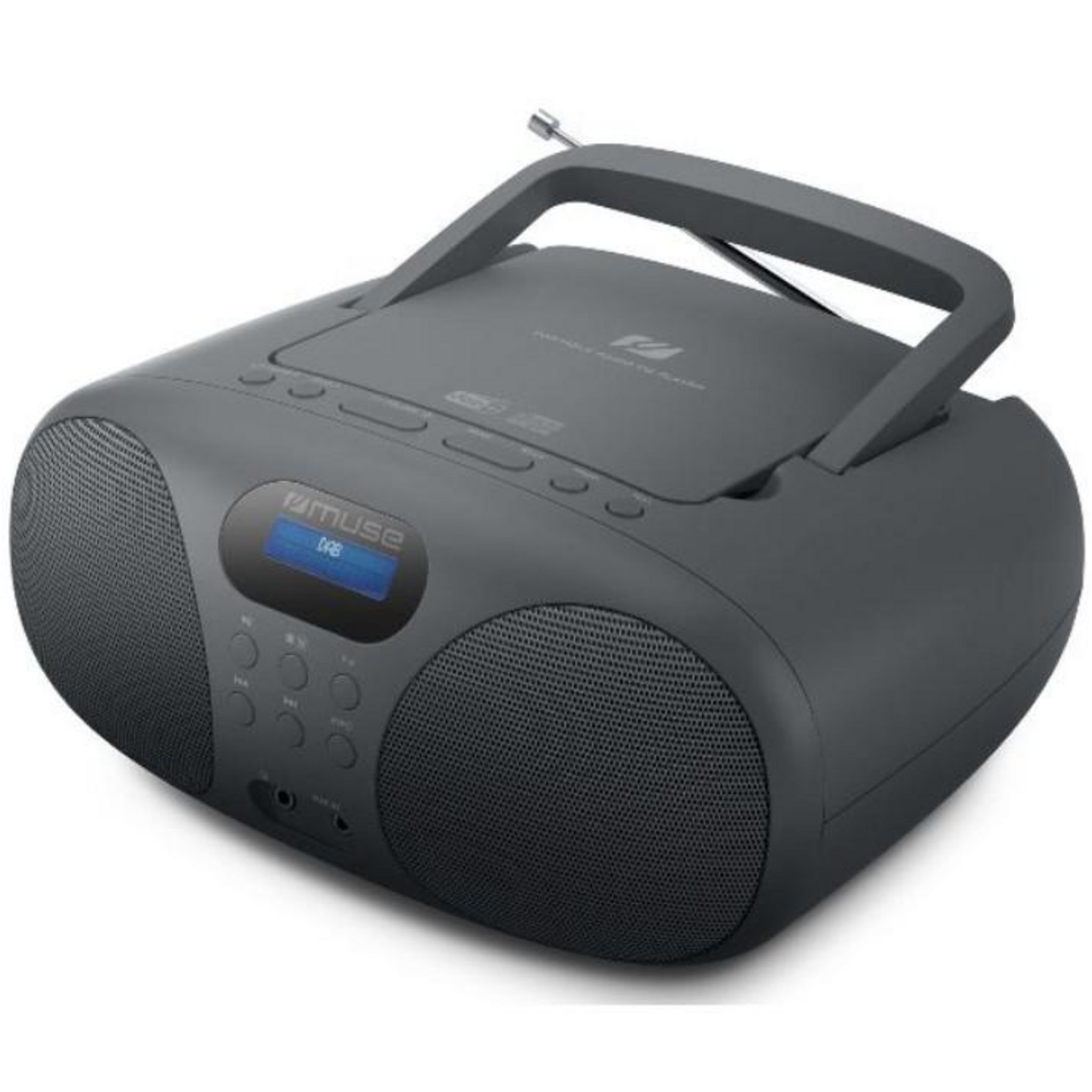 Muse MD208DB Radio laser Muse MD208DB sans cassette avec lecteur CD. - Type de produit : Radio laser.Puissance : NC W (RMS).Tuner : FM/DAB.Lecture CD. Compatible CD-R/RW. Tuner FM, DAB/DAB+. Affichage LCD avec rétroéclairage. 20 stations préréglées (10 FM + 10 DAB). Fonctions répétition totale ou pa