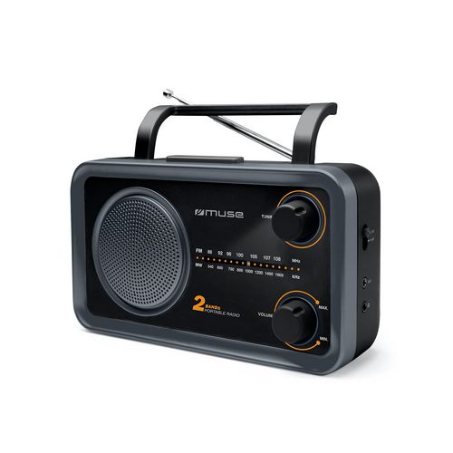 Muse M06DS Radio portable Muse M06DS avec 2 gammes FM/MW et tuner analogique. Dotée d'une antenne FM pivotante, interrupteur Marche/Arrêt, Réglage de volume rotatif, Sélecteur de gammes d'ondes, Poignée de transport et Haut-parleur de 7,6 cm. Pour la connexion, elle bénéficie d'une prise pour écoute